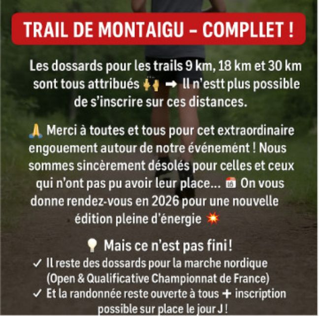 ATTENTION : Plus de place sur les trails 9km, 18km et 30km